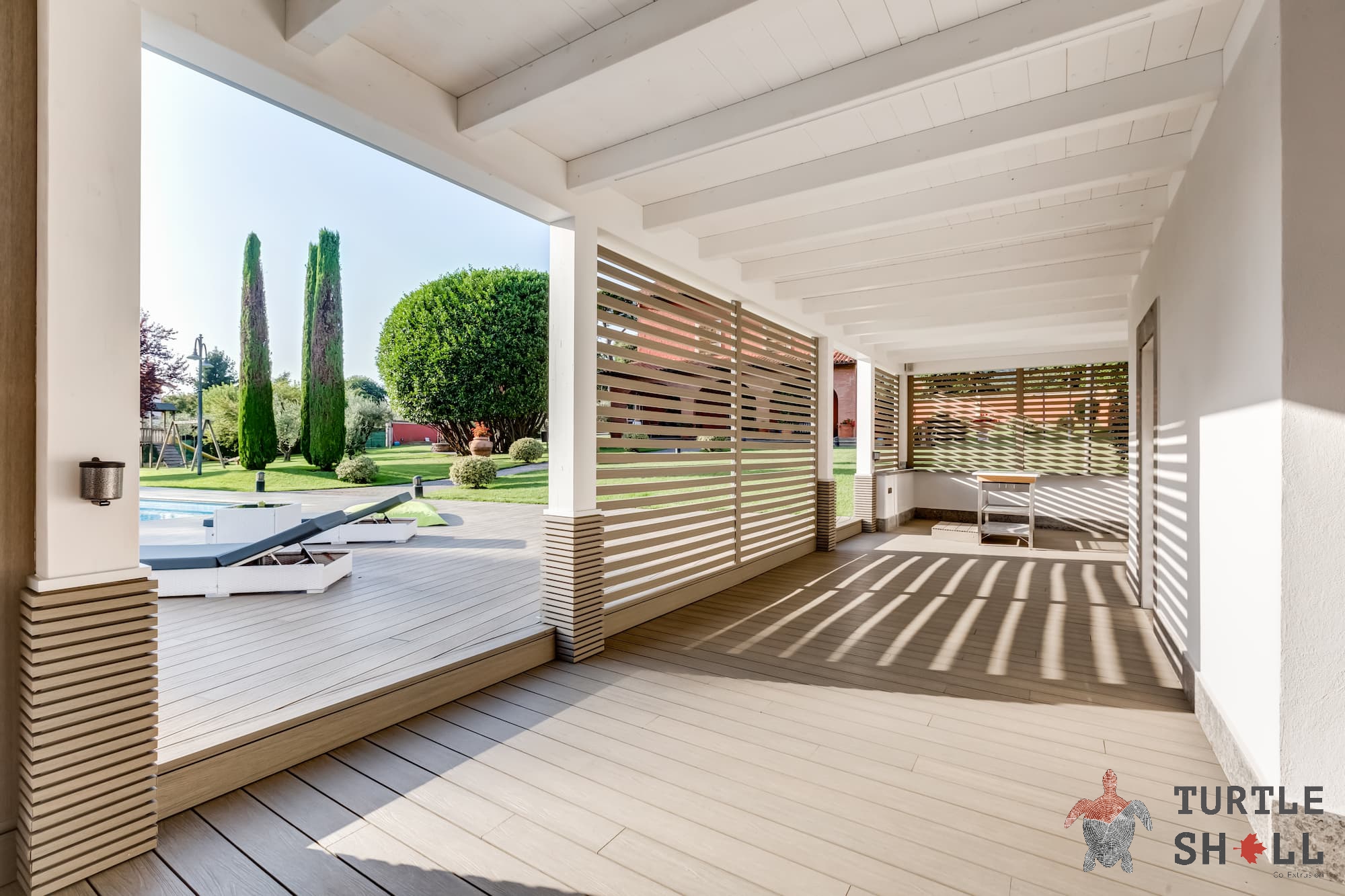 Одной из особенностей террасной доски Turtle Shell Round French Oak Co-Extrusion (Dual) (Французский Дуб) является ее пустотелая конструкция, которая делает ее легкой и удобной в укладке. Кроме того, благодаря технологии ко-экструзии, эта террасная доска имеет двойное покрытие, что делает ее особенно устойчивой к воздействию внешних факторов.